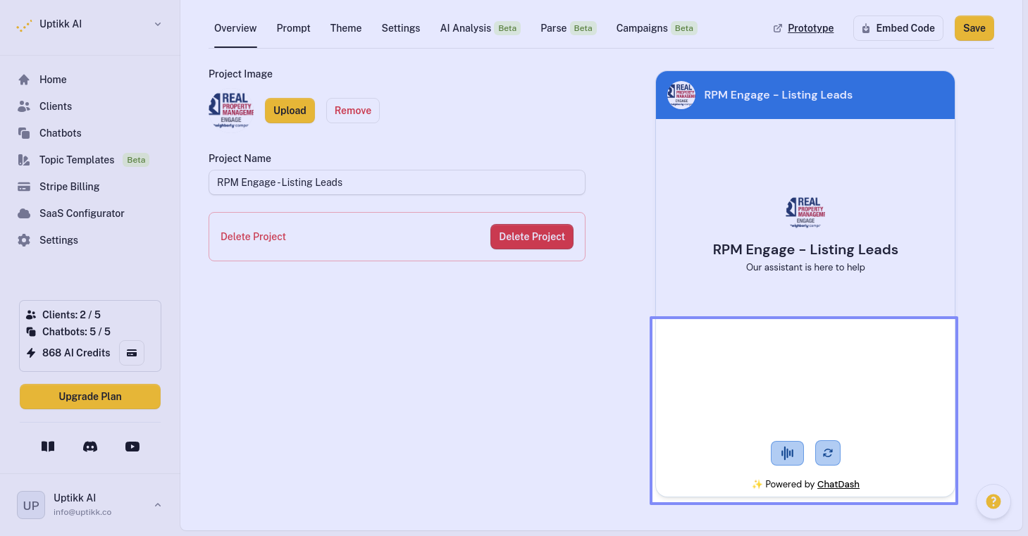 Would like to have any option for branding in retell chatbot setting. Change the default “Powered by Chatdash”