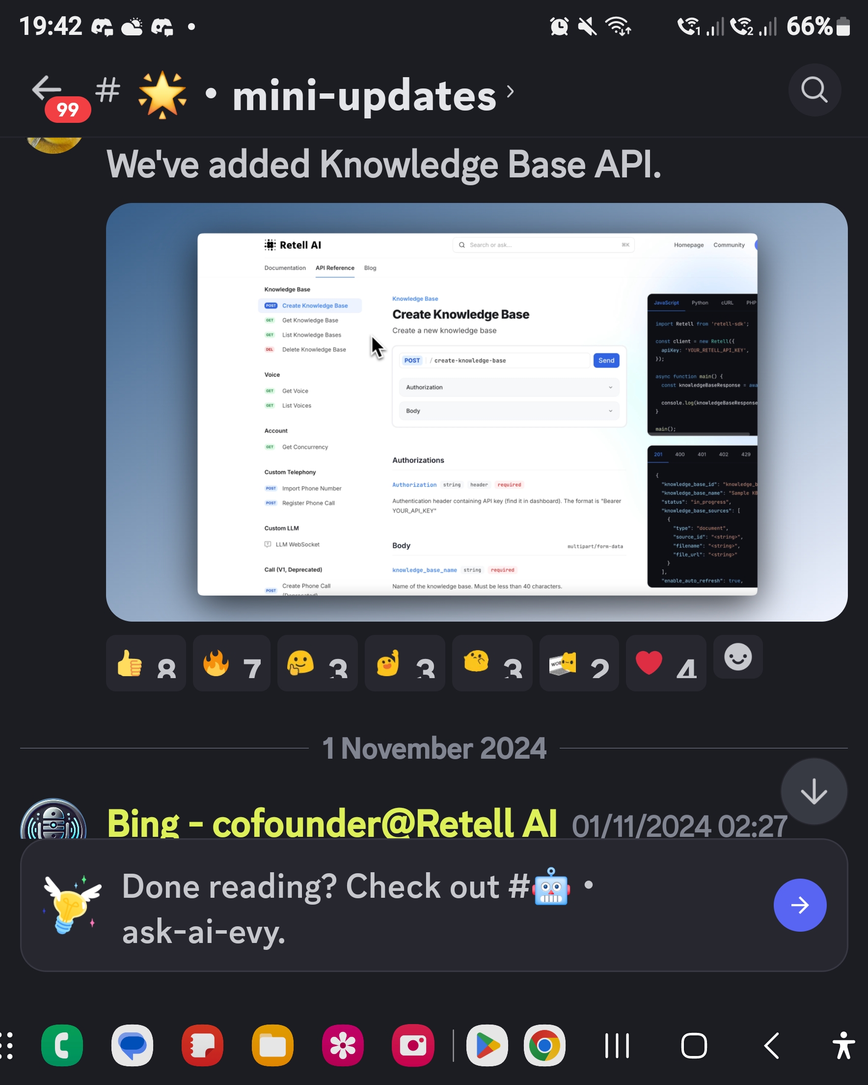 Retell api is now live, woukd be ideal so we can allow client uploads to retell knowledgebase, much appreciated.